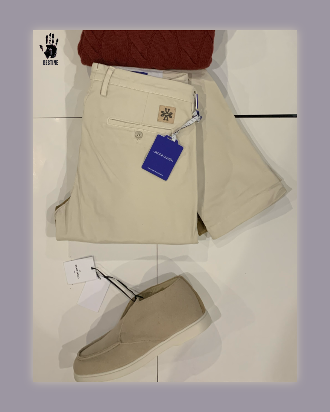 Ehhez társul egy Jacob Cohën Bobby chino, precíz szabással, mindennapi eleganciára tervezve. (89.900Ft)